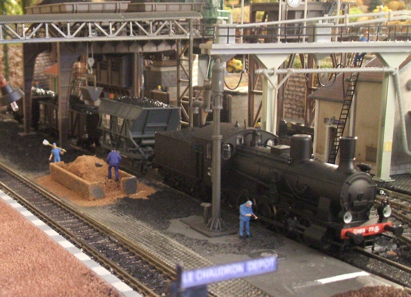 ...Jusqu'en 1937, le chargement du tender s'éfectuait, tenez-vous solidement, au moyen de grands paniers qui ressemblaient à d'énormes pots de fleurs munis de deux anses mais remplis de cinquante kilos de charbon chacun ! Incroyable mais vrai ! Après s'être farci cinq tonnes de charbon en route, plus la briquette, le chauffeur, aidé de son mécano et d'un manoeuvre, balançait cent paniers de carbi dans son tender en 1936 comme en 1880, à la seule différence qu'en 1880 les locos ne dévoraient pas cinq tonnes de charbon en quelques heures.